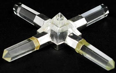 A unique crystal creation intended to aid you within a wide range of energetic, ritual, and spiritual practices, the Pyramid Generator is a collection of faceted quartz points affixed to the base of a four-sided, quartz pyramid. Known as a shape that attracts energy, the pyramid is used as a focus, gathering and collecting energy before passing it to the four crystal points which can then direct the energy from their points. With both the pyramid and the points made of quartz, the whole construction is a powerful conductor that can be used to channel, cleanse, and direct energies throughout your home, functioning as a little generator for the positive flow of energy within your sacred space or home.